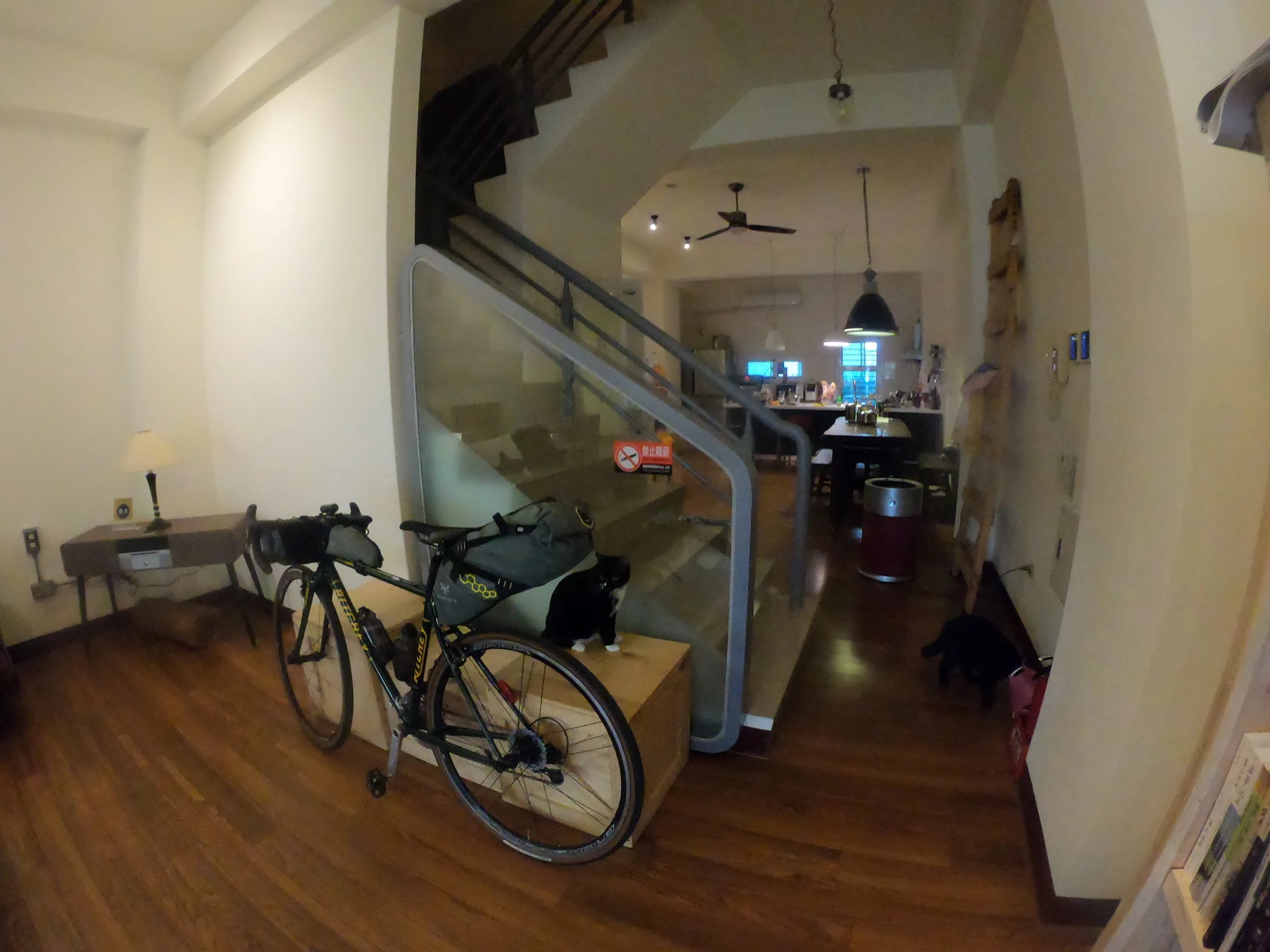 Once we reached our guesthouse, we were greeted by the resident friendly felines and had plenty of space to unpack our luggage and assemble our Ritchey Break-Away bikes.