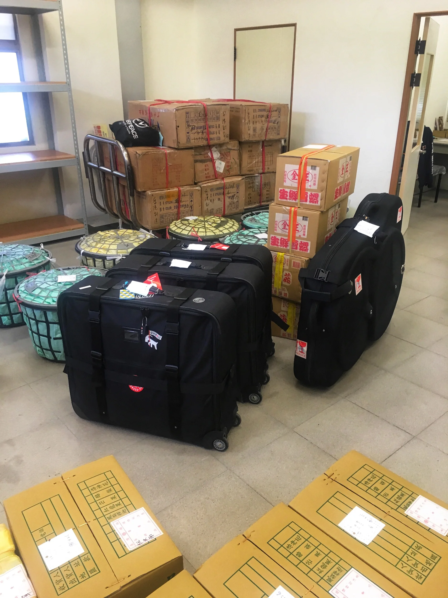 Since we would not arrive in Taipei for another five days, we didn’t have to worry about any time restrictions. The fees were not expensive at all if your luggage is within reasonable dimensions. If you have a Ritchey Break-Away suitcase (in our case we had three), then the fees were only 270 TWD for all three (happy dance), whereas it was a bit more for the much bigger bike bag that Treas had with her.