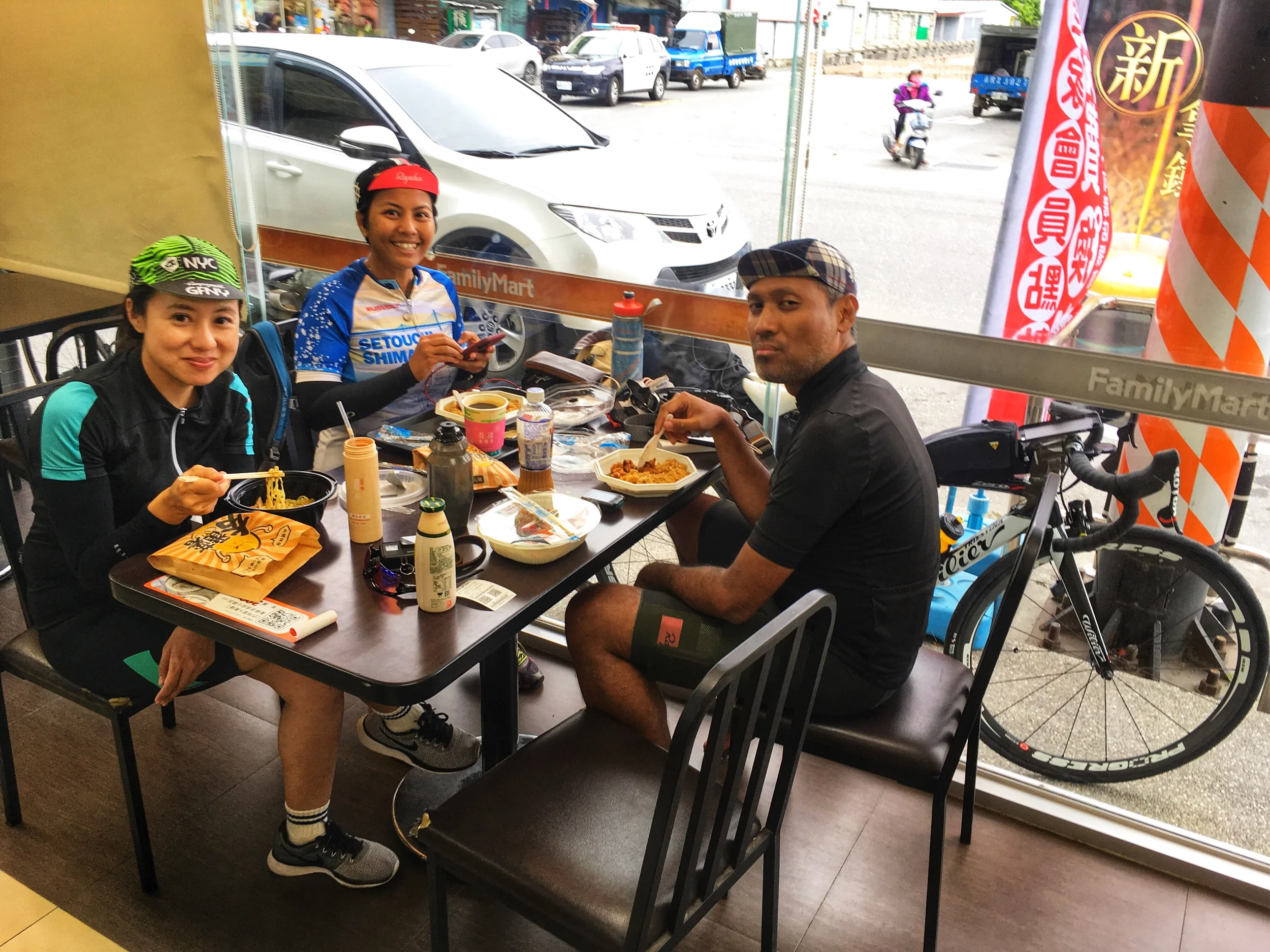 Nadiah and her colleague Treas spent the first few days on assignment during Taipei Cycle Show, and I flew in for the last day of the event. Maya would join us a few hours later, and together we assembled for our tour! With our bikes packed in their suitcases, we took the local train from Taipei’s Nangang Station all the way to Taitung. The trip took around 4 hours, and it was a nice way to relax and enjoy the scenery outside. Or doze off, which we did too.
