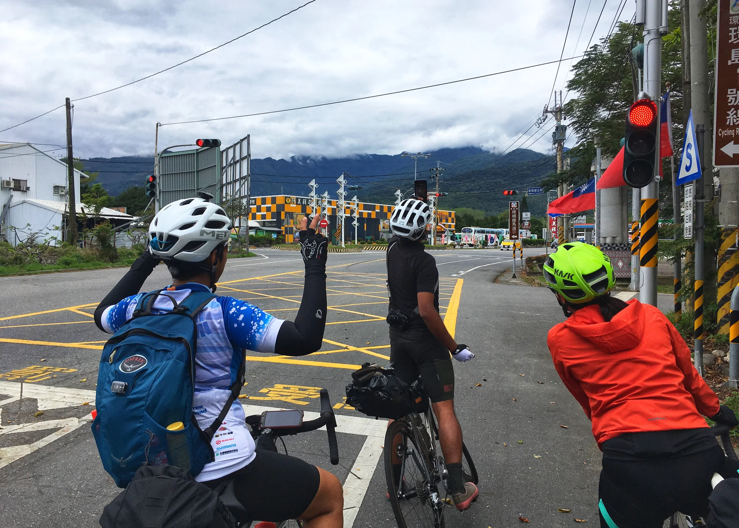 After exploring the farm roads, we had a quick bite to eat at Guanshan before we continued our journey north towards Chishang. Along the way we encountered a little bit of rain, but nothing too heavy for our light rain jackets that kept us mostly dry. Heading towards Chishang the road continued at a gradual ascent with many rolling climbs in between, but it was well worth it once we reached our scenic pitstop. In Chishang, you will come across one of the East Rift Valley’s most photographed roads – Brown Boulevard. The name came from a famous commercial for Mr. Brown Coffee which starred the Japanese-Taiwanese pop-idol Takeshi Kaneshiro. After taking a break to take in the scenery, it was very clear why this place was chosen.