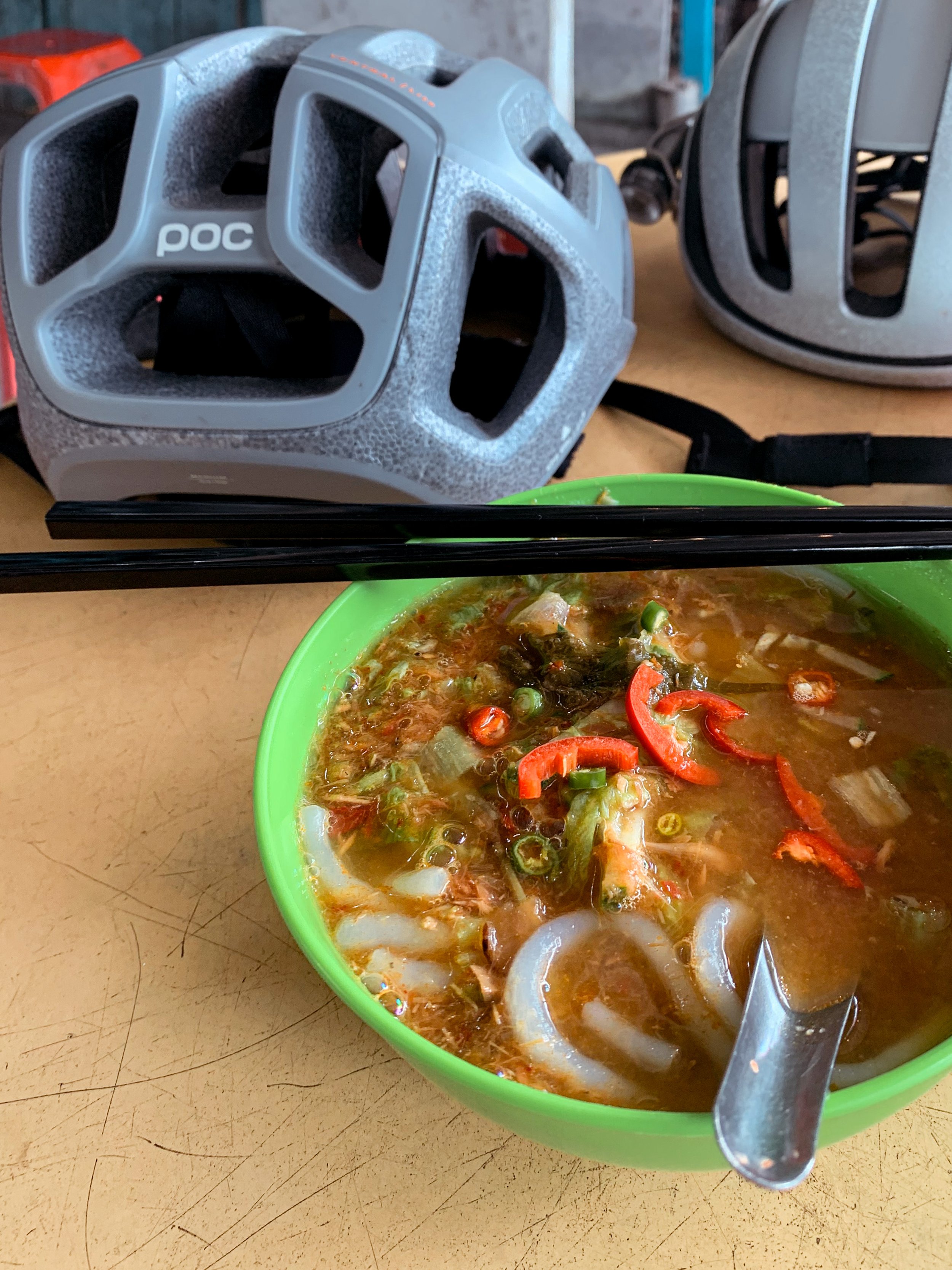 We reached Taiping in time for a massive rainstorm, after which we rolled into town and made a quick bike shop visit before checking into our lake side hotel. Dinner was a quick one nearby before we tucked in for the night. The next day would be a longer ride and an early start was obviously preferable.
