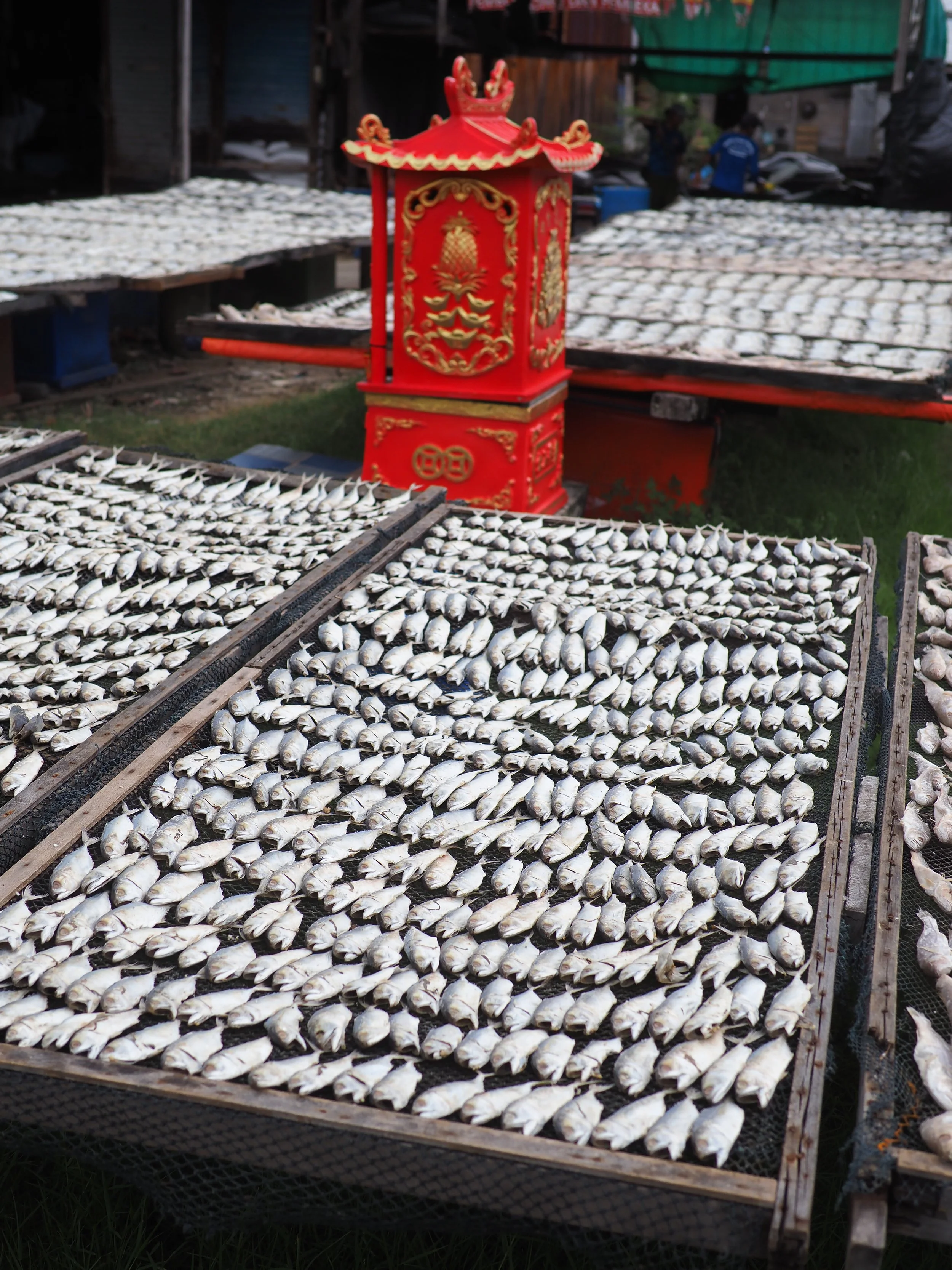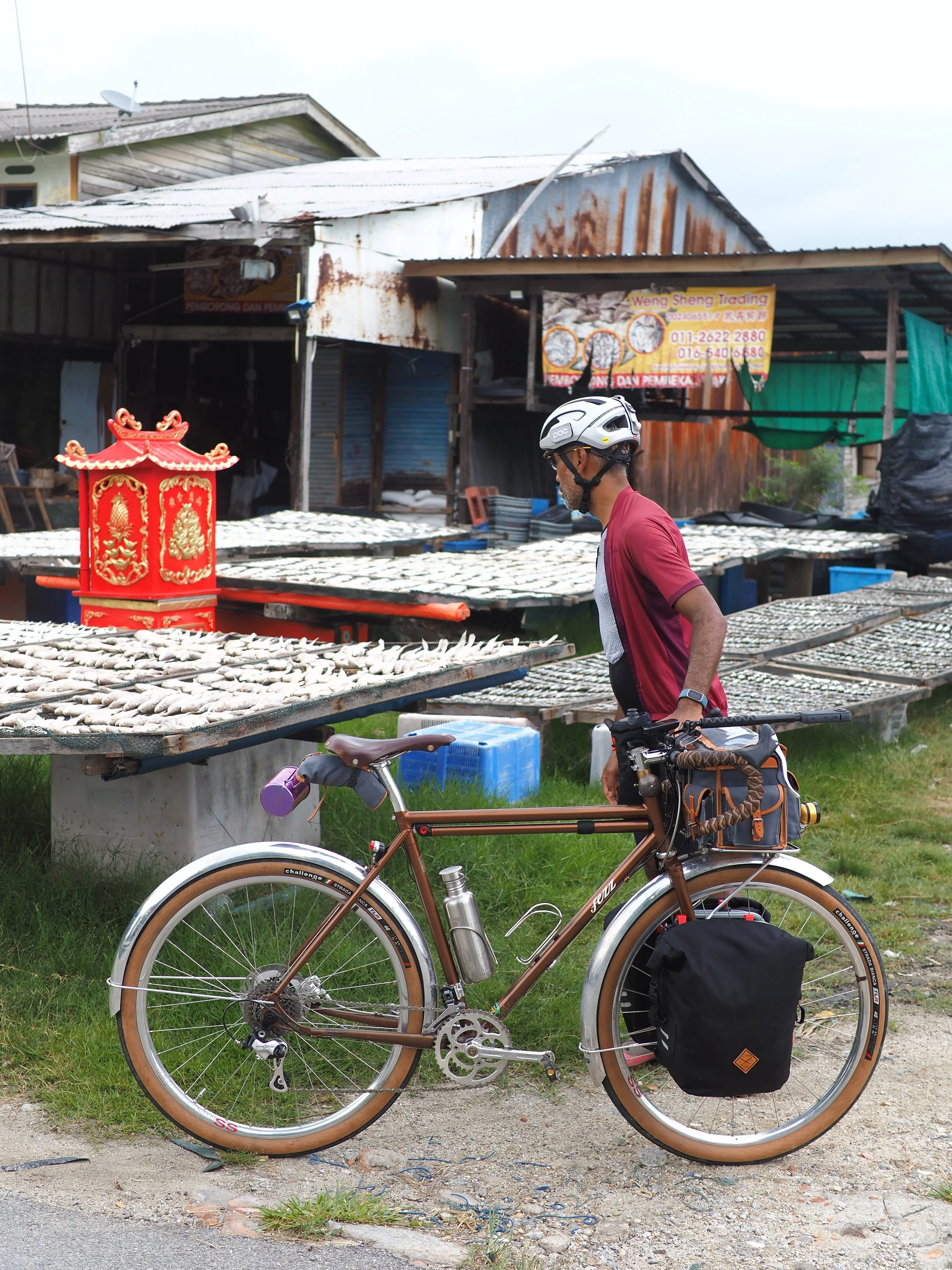 From Taiping we cycled northwest towards the fishing town of Simpang Ampat, where we took the turn off towards the western coastline. This route took us through Kuala Gula and Kuala Kurau, a long and lonely stretch of road with nothing much on either side other than paddy fields and palm oil plantations. Combined with the some serious headwinds, this stretch was the perfect location for us to just take our brains off and enjoy the rhythm of the road as we pedalled silently together in sync, both immersed in our own thoughts. If you’re lucky, there’s bird watching to be done here too, thanks to the road’s proximity to the Kuala Gula Bird Sanctuary. Eventually we reached the bridge that crosses over the mouth of the Kurau River from Bagan Seberang to Kuala Kurau, after which we make a sharp left turn to head to a fishing town for lunch.