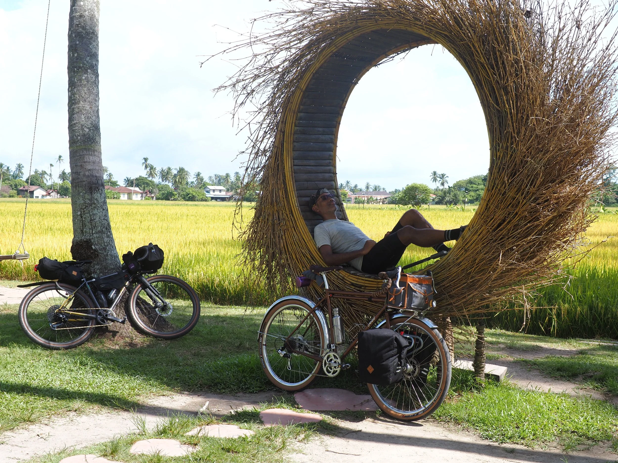 Hunger appeased, we rendezvoused with our friends from KL - Nafis, Roshidi, Reggie, Bruce and Suhaidi - at Kampung Agong for another drink. It turned out to be a lengthy stop which gave us the opportunity to do a bit of exploring the self styled countryside “Agro Themed Park” - which for lack of better words is pretty much your fantasy idyllic kampung surrounded by paddy fields. It was a resort of sorts, and we’re glad we had the chance to visit. Bruce offered a spot in the car for our bags, and after a brief internal conflict we both unloaded our bikes for the final stretch into Kedah. It would turn out to be a good idea because it was a brisk ride with the gang, since the rest of them were on fresh legs having just ridden over from Penang Island or driven up from KL.